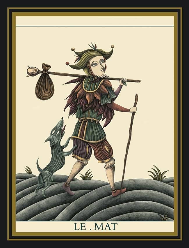 À l’envers : Si c’est confirmé par les cartes voisines, le Mat devient violent et impétueux. Les sentiments sont exacerbés. Le désir d’aventure peut aller jusqu’à la destruction du/de la consultant-e. L’agressivité et la violence peuvent dégénérer. Cette carte peut aussi symboliser l’insécurité, la peur de bouger. Le/la consultant-e peut être en proie d’obsessions, de manies et autres problèmes psychologiques, sujet à des coups de tête, il peut finir par en perdre sa liberté.